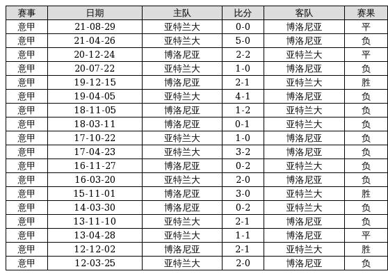 博洛尼亚 VS 亚特兰大两队近10年的交战次数为18场,博洛尼亚3胜3平12负,赢球概率为16.7%,平局概率为16.7%,输球概率为66.7%。