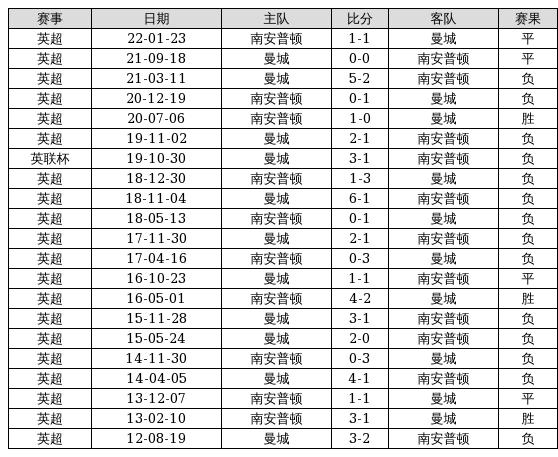 南安普顿 VS 曼城两队近10年的交战次数为21场,南安普顿3胜4平14负,赢球概率为14.3%,平局概率为19%,输球概率为66.7%。
