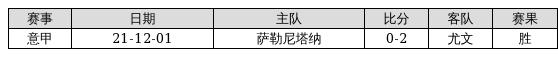 尤文 VS 萨勒尼塔纳两队近10年的交战次数为1场,尤文1胜0平0负,赢球概率为100%,平局概率为0%,输球概率为0%。