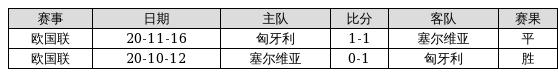 匈牙利 VS 塞尔维亚两队近10年的交战次数为2场,匈牙利1胜1平0负,赢球概率为50%,平局概率为50%,输球概率为0%。