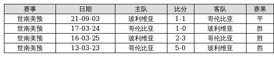 哥伦比亚 VS 玻利维亚两队近10年的交战次数为4场,哥伦比亚3胜1平0负,赢球概率为75%,平局概率为25%,输球概率为0%。
