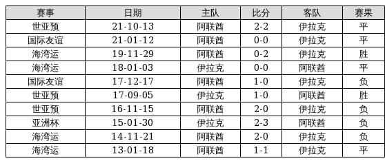 伊拉克 VS 阿联酋两队近10年的交战次数为10场,伊拉克2胜4平4负,赢球概率为20%,平局概率为40%,输球概率为40%。