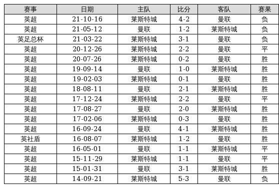 曼联 VS 莱斯特城两队近10年的交战次数为17场,曼联9胜4平4负,赢球概率为52.9%,平局概率为23.5%,输球概率为23.5%。
