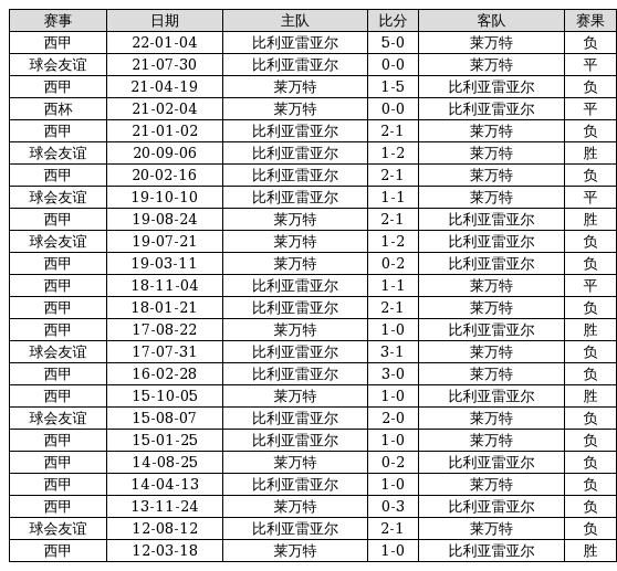 莱万特 VS 比利亚雷亚尔两队近10年的交战次数为24场,莱万特5胜4平15负,赢球概率为20.8%,平局概率为16.7%,输球概率为62.5%。