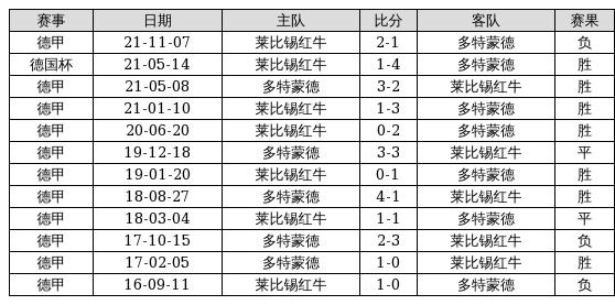 多特蒙德 VS 莱比锡红牛两队近10年的交战次数为12场,多特蒙德7胜2平3负,赢球概率为58.3%,平局概率为16.7%,输球概率为25%。