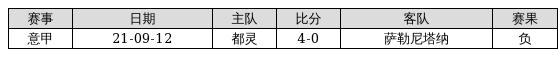 萨勒尼塔纳 VS 都灵两队近10年的交战次数为1场,萨勒尼塔纳0胜0平1负,赢球概率为0%,平局概率为0%,输球概率为100%。