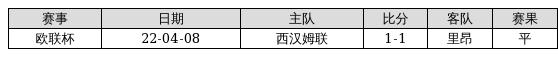 里昂 VS 西汉姆联两队近10年的交战次数为1场,里昂0胜1平0负,赢球概率为0%,平局概率为100%,输球概率为0%。