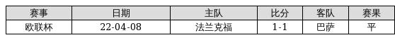 巴萨 VS 法兰克福两队近10年的交战次数为1场,巴萨0胜1平0负,赢球概率为0%,平局概率为100%,输球概率为0%。