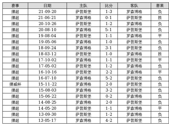 萨普斯堡 VS 罗森博格两队近10年的交战次数为19场,萨普斯堡2胜4平13负,赢球概率为10.5%,平局概率为21.1%,输球概率为68.4%。
