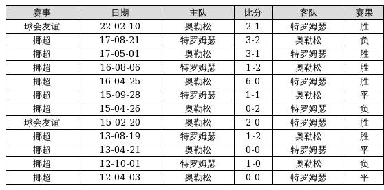奥勒松 VS 特罗姆瑟两队近10年的交战次数为12场,奥勒松6胜3平3负,赢球概率为50%,平局概率为25%,输球概率为25%。
