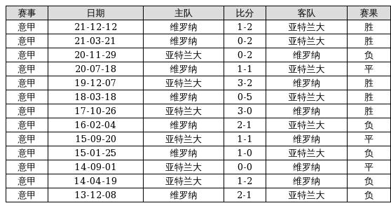 亚特兰大 VS 维罗纳两队近10年的交战次数为13场,亚特兰大5胜3平5负,赢球概率为38.5%,平局概率为23.1%,输球概率为38.5%。