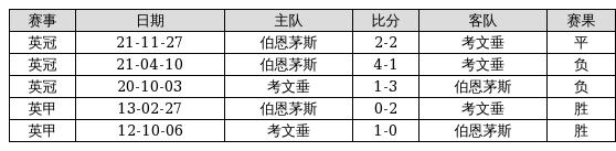 考文垂 VS 伯恩茅斯两队近10年的交战次数为5场,考文垂2胜1平2负,赢球概率为40%,平局概率为20%,输球概率为40%。