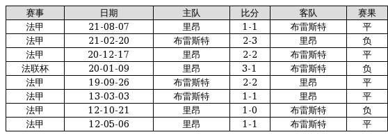 布雷斯特 VS 里昂两队近10年的交战次数为8场,布雷斯特0胜5平3负,赢球概率为0%,平局概率为62.5%,输球概率为37.5%。