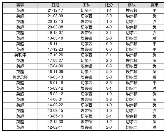 埃弗顿 VS 切尔西两队近10年的交战次数为22场,埃弗顿7胜4平11负,赢球概率为31.8%,平局概率为18.2%,输球概率为50%。