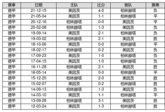 柏林赫塔 VS 美因茨两队近10年的交战次数为18场,柏林赫塔6胜5平7负,赢球概率为33.3%,平局概率为27.8%,输球概率为38.9%。