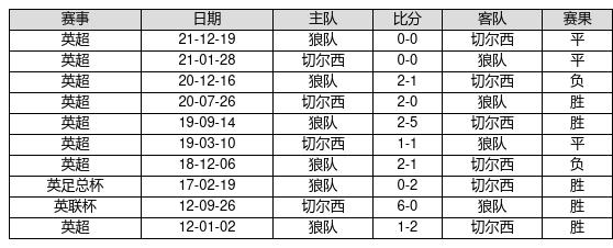 切尔西 VS 狼队两队近10年的交战次数为10场,切尔西5胜3平2负,赢球概率为50%,平局概率为30%,输球概率为20%。