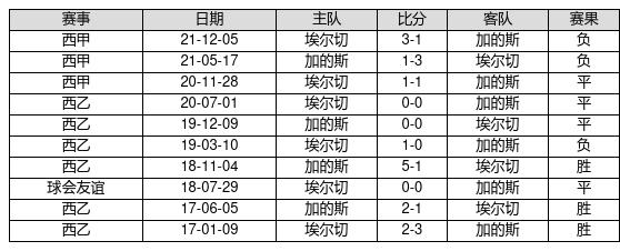 加的斯 VS 埃尔切两队近10年的交战次数为10场,加的斯3胜4平3负,赢球概率为30%,平局概率为40%,输球概率为30%。
