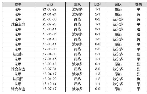 昂热 VS 波尔多两队近10年的交战次数为17场,昂热6胜7平4负,赢球概率为35.3%,平局概率为41.2%,输球概率为23.5%。