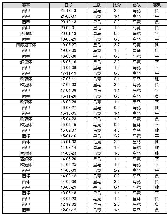 马竞 VS 皇马两队近10年的交战次数为36场,马竞8胜16平12负,赢球概率为22.2%,平局概率为44.4%,输球概率为33.3%。