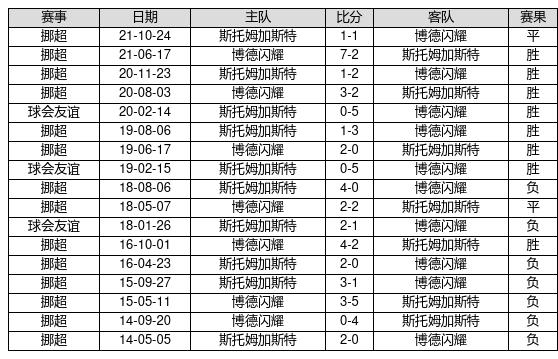 博德闪耀 VS 斯托姆加斯特两队近10年的交战次数为17场,博德闪耀8胜2平7负,赢球概率为47.1%,平局概率为11.8%,输球概率为41.2%。