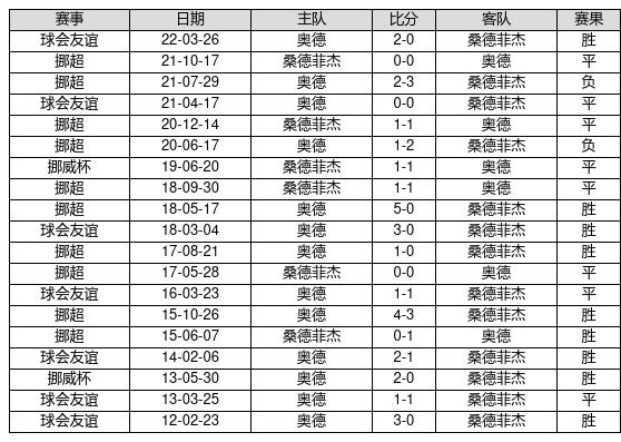 奥德 VS 桑德菲杰两队近10年的交战次数为19场,奥德9胜8平2负,赢球概率为47.4%,平局概率为42.1%,输球概率为10.5%。