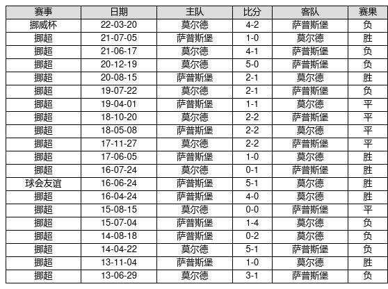 萨普斯堡 VS 莫尔德两队近10年的交战次数为20场,萨普斯堡7胜5平8负,赢球概率为35%,平局概率为25%,输球概率为40%。