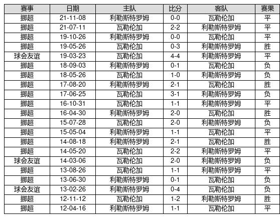 利勒斯特罗姆 VS 瓦勒伦加两队近10年的交战次数为21场,利勒斯特罗姆5胜9平7负,赢球概率为23.8%,平局概率为42.9%,输球概率为33.3%。