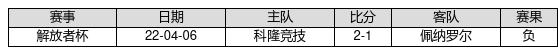 佩纳罗尔 VS 科隆竞技两队近10年的交战次数为1场,佩纳罗尔0胜0平1负,赢球概率为0%,平局概率为0%,输球概率为100%。