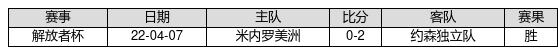 约森独立队 VS 米内罗美洲两队近10年的交战次数为1场,约森独立队1胜0平0负,赢球概率为100%,平局概率为0%,输球概率为0%。