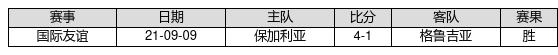 保加利亚 VS 格鲁吉亚两队近10年的交战次数为1场,保加利亚1胜0平0负,赢球概率为100%,平局概率为0%,输球概率为0%。