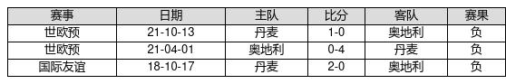 奥地利 VS 丹麦两队近10年的交战次数为3场,奥地利0胜0平3负,赢球概率为0%,平局概率为0%,输球概率为100%。