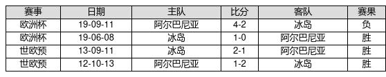 冰岛 VS 阿尔巴尼亚两队近10年的交战次数为4场,冰岛3胜0平1负,赢球概率为75%,平局概率为0%,输球概率为25%。