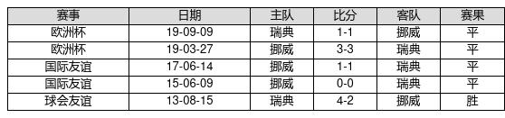 瑞典 VS 挪威两队近10年的交战次数为5场,瑞典1胜4平0负,赢球概率为20%,平局概率为80%,输球概率为0%。