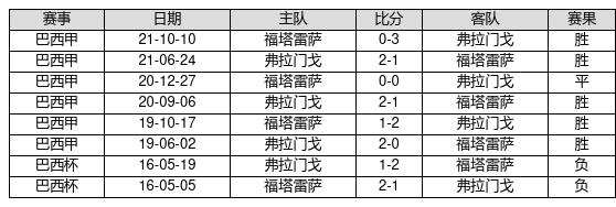 弗拉门戈 VS 福塔雷萨两队近10年的交战次数为8场,弗拉门戈5胜1平2负,赢球概率为62.5%,平局概率为12.5%,输球概率为25%。
