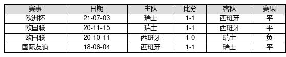 瑞士 VS 西班牙两队近10年的交战次数为4场,瑞士0胜3平1负,赢球概率为0%,平局概率为75%,输球概率为25%。