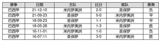 圣保罗 VS 米内罗美洲两队近10年的交战次数为6场,圣保罗2胜2平2负,赢球概率为33.3%,平局概率为33.3%,输球概率为33.3%。