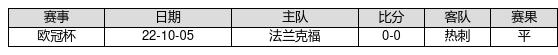 热刺 VS 法兰克福两队近10年的交战次数为1场,热刺0胜1平0负,赢球概率为0%,平局概率为100%,输球概率为0%。