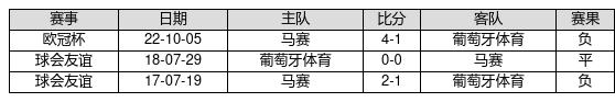 葡萄牙体育 VS 马赛两队近10年的交战次数为3场,葡萄牙体育0胜1平2负,赢球概率为0%,平局概率为33.3%,输球概率为66.7%。