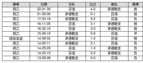芬洛 VS 多德勒支两队近10年的交战次数为11场,芬洛5胜1平5负,赢球概率为45.5%,平局概率为9.1%,输球概率为45.5%。