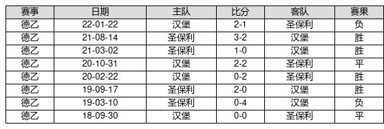 圣保利 VS 汉堡两队近10年的交战次数为8场,圣保利4胜2平2负,赢球概率为50%,平局概率为25%,输球概率为25%。