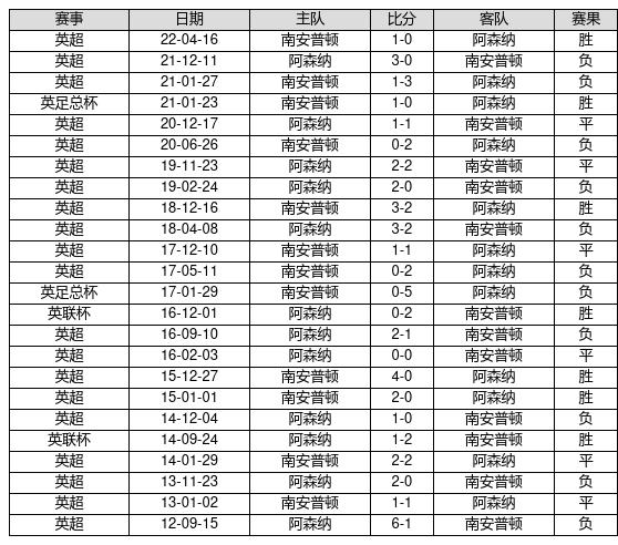 南安普顿 VS 阿森纳两队近10年的交战次数为24场,南安普顿7胜6平11负,赢球概率为29.2%,平局概率为25%,输球概率为45.8%。