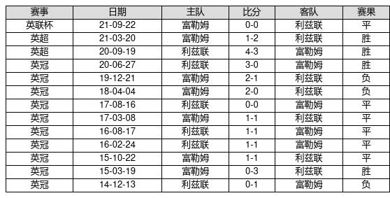 利兹联 VS 富勒姆两队近10年的交战次数为13场,利兹联4胜6平3负,赢球概率为30.8%,平局概率为46.2%,输球概率为23.1%。