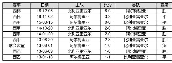 比利亚雷亚尔 VS 阿尔梅里亚两队近10年的交战次数为9场,比利亚雷亚尔5胜3平1负,赢球概率为55.6%,平局概率为33.3%,输球概率为11.1%。