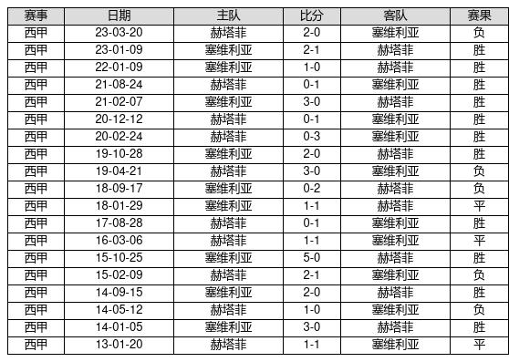 塞维利亚 VS 赫塔菲两队近10年的交战次数为19场,塞维利亚11胜3平5负,赢球概率为57.9%,平局概率为15.8%,输球概率为26.3%。