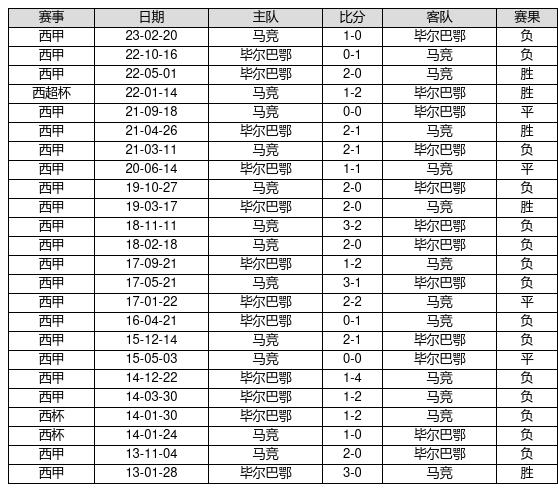 毕尔巴鄂 VS 马竞两队近10年的交战次数为24场,毕尔巴鄂5胜4平15负,赢球概率为20.8%,平局概率为16.7%,输球概率为62.5%。