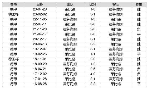 莱比锡 VS 霍芬海姆两队近10年的交战次数为16场,莱比锡10胜3平3负,赢球概率为62.5%,平局概率为18.8%,输球概率为18.8%。