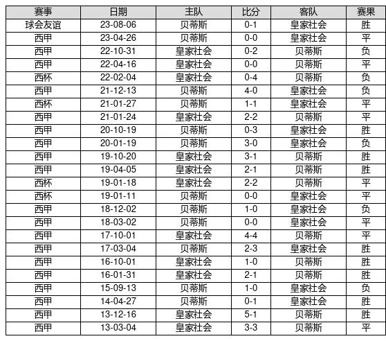 皇家社会 VS 贝蒂斯两队近10年的交战次数为24场,皇家社会9胜9平6负,赢球概率为37.5%,平局概率为37.5%,输球概率为25%。