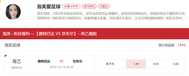 泡芙爱足球荷乙推荐:鹿斯巴达vs坎布尔