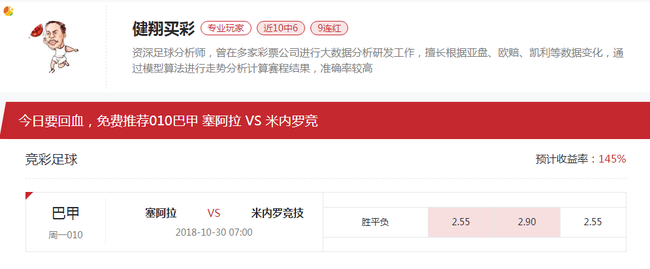 周一010 巴甲 塞阿拉 VS 米内罗竞,推荐结果