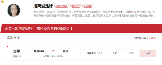 [新浪球通]泡芙爱足球竞彩推荐:桑普多利亚vs都灵